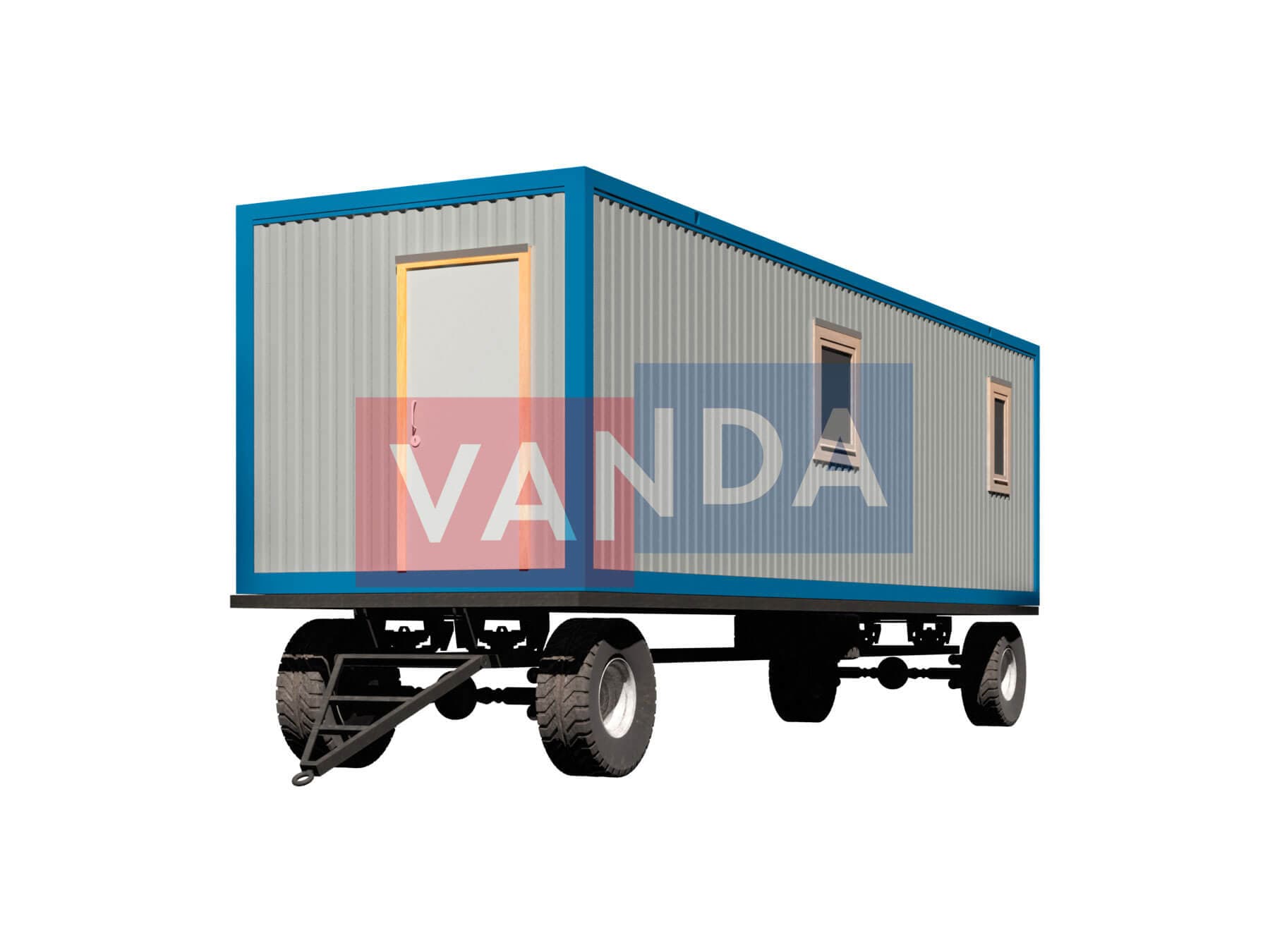 Строительный вагончик на шасси 9,0 x 2,4 изготавливается из несущего каркаса (верхняя и нижняя обвязка): швеллер 100х50х3 мм., угловые стойки: сложно - гнутый угол 90х90х3 мм., крыша блок-контейнера: металл сварной 0,9-1 мм., качественная наружная отделка: оцинкованный профлист, внутренняя отделка стен: Вагонка деревянная, внутренняя отделка потолка: Вагонка деревянная, вспомогательный деревянный каркас (стены): брусок 40х75 мм., лаги пола: обрезная доска 40х100 мм., лаги потолка: обрезная доска 40х100 мм., выполнено утепление: Минеральная вата «ISOVER» – 50 мм. и пароизоляция: плёнка техническая, черновой пол состоит из: обрезная доска 20 мм. (2 сорт), чистовой пол покрыт: ДСП строительное 16 мм., отделка пола выполнена из качественных материалов. Контейнер комплектуется окнами: деревянное, двойное остекление 800х1000, входной дверью: ДГ 21-8 обшита снаружи оцинкованным листом, врезной замок и внутренними дверями: ДГ 21-8 (при наличии перегородки). Если в БК присутствуют перегородки, то для них используется: брусок 40х50 мм.